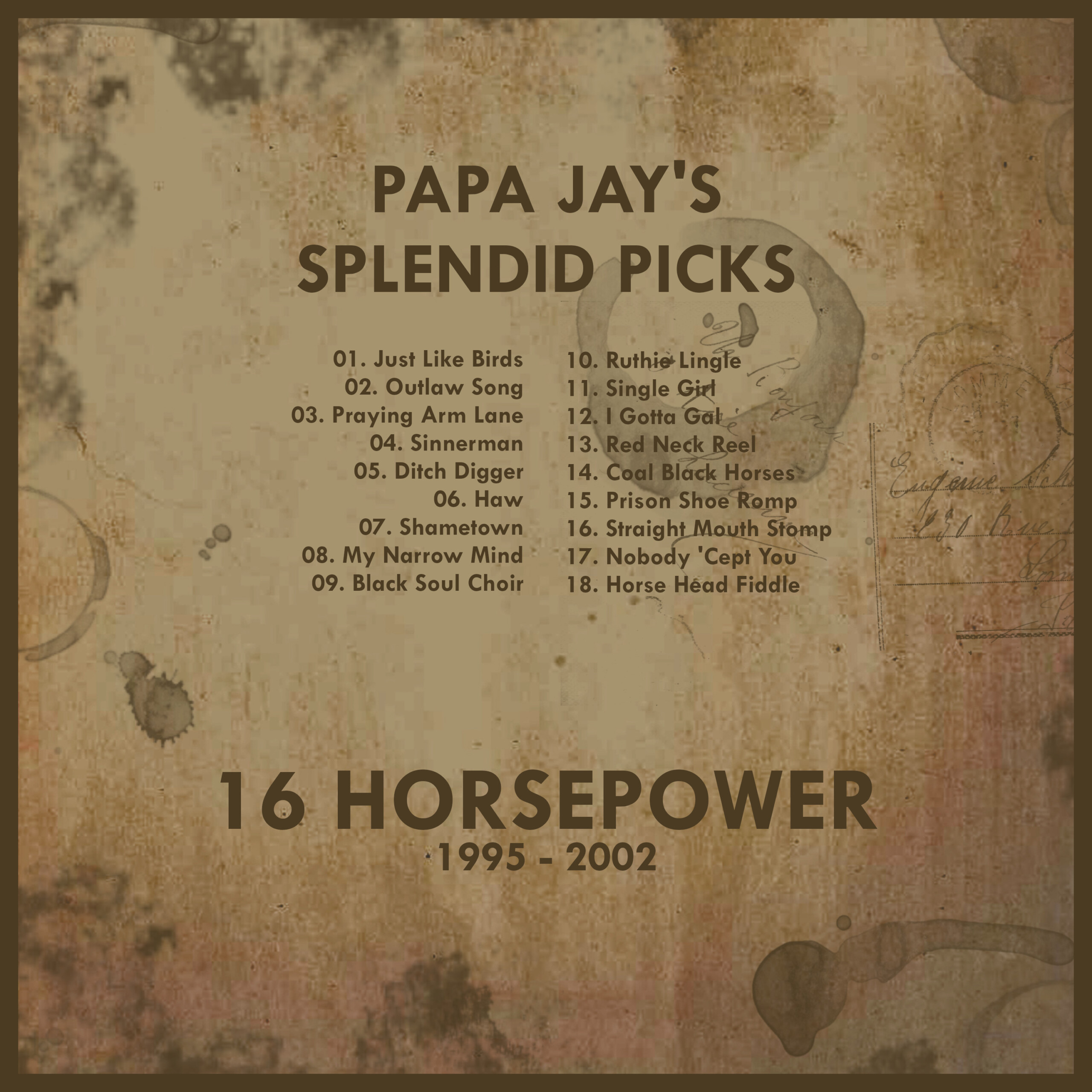 My favourite songs by 16 Horsepower taken from their albums/EPs “16 Horsepower”, “Sackloth -N- Ashes”, “Low Estate”, “Secret South” and “Folklore” which have been released between 1995 and 2002.