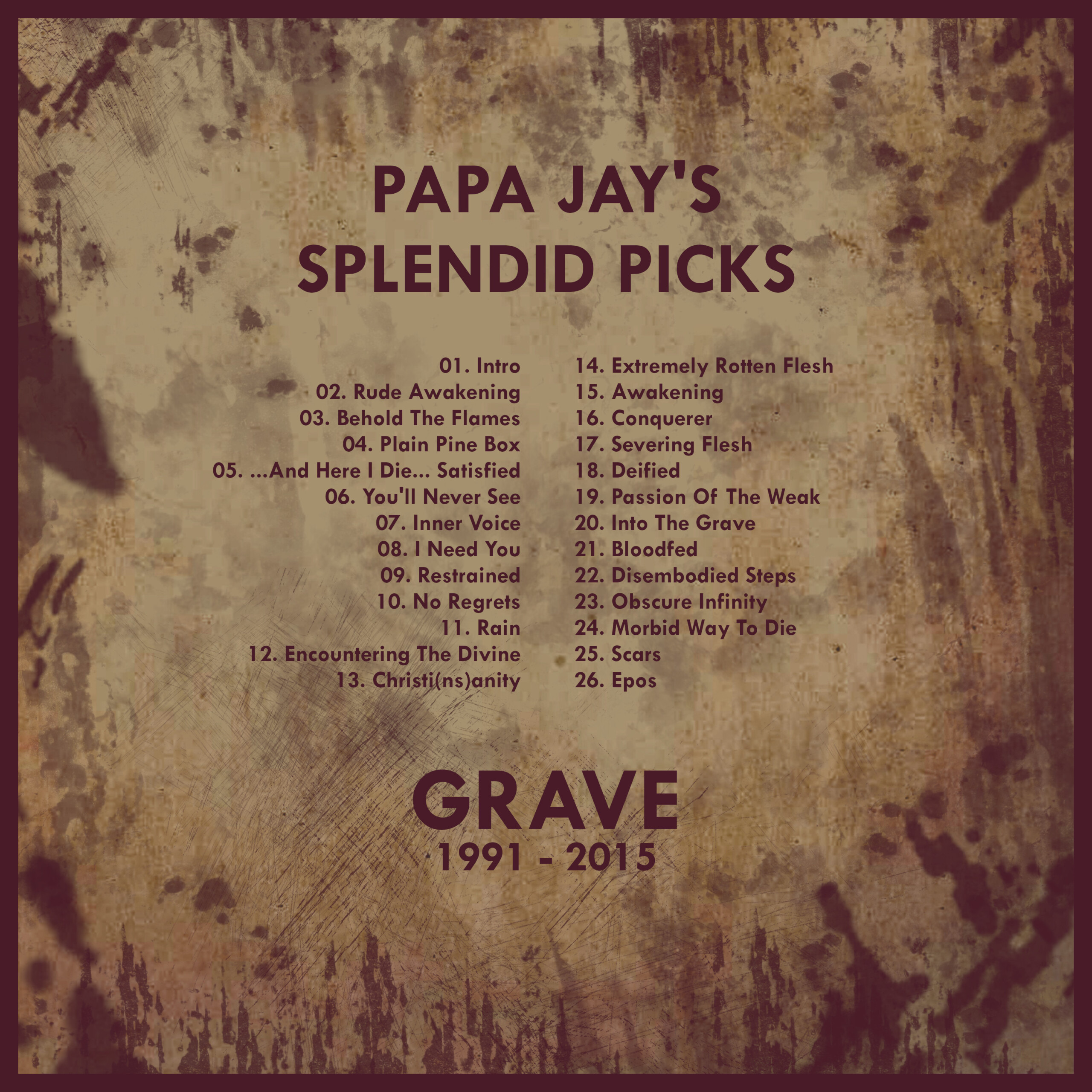 My favourite songs by Grave taken from their albums “Into The Grave”, “You’ll Never See…”, “Soulless”, “Hating Life”, “Back From The Grave”, “Fiendish Regression”, “Dominion VIII”, “Burial Ground”, “Endless Procession Of Souls” and “Out Of Respect For The Dead” which have been recorded between 1991 – 2015.