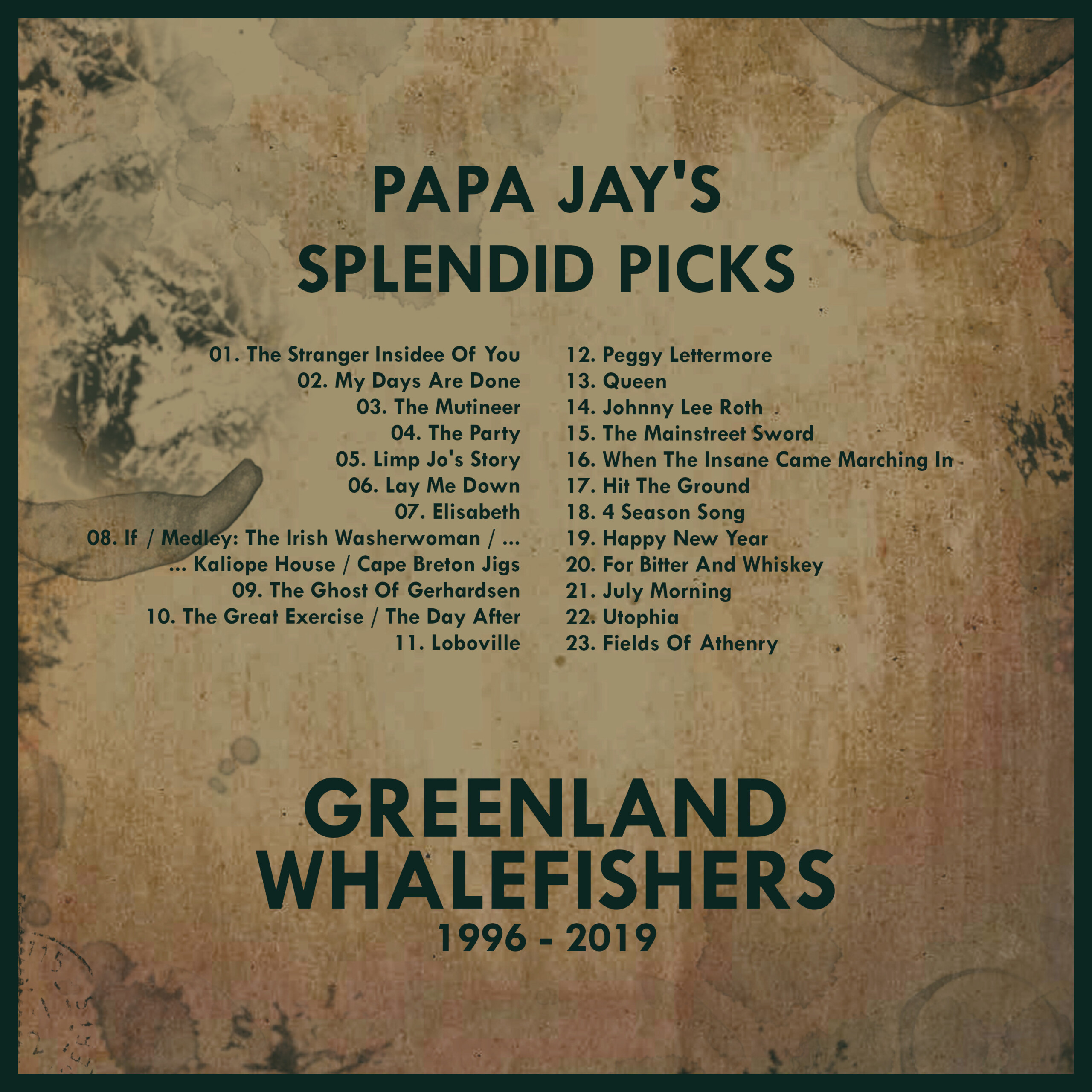 My favourite songs by Greenland Whalefishers taken from their albums “The Mainstreet Sword”, “Loboville”, “The Streets Of Salvation”, “Amazing Space (B-Sides & Other Crap)”, “The Thirsty Cave” and “Based On A True Story” which have been released between 1996 and 2019.