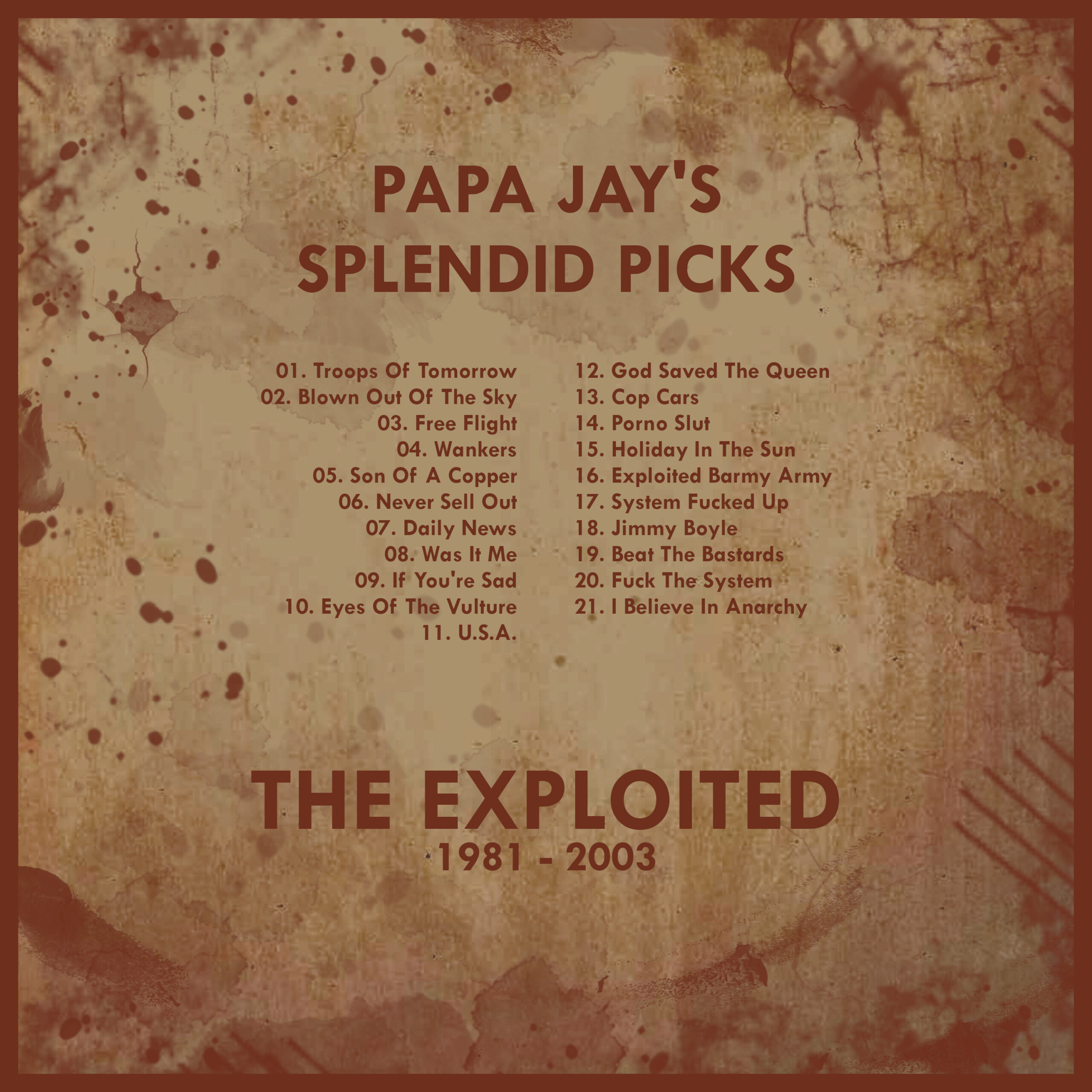 My favourite tracks by The Exploited taken from their albums “Punk’s Not Dead”, “Troops Of Tomorrow”, “Let’s Start A War… Said Maggie One Day”, “The Massacre”, “Beat The Bastards” and “Fuck The System” which have been released between 1981 and 2003.