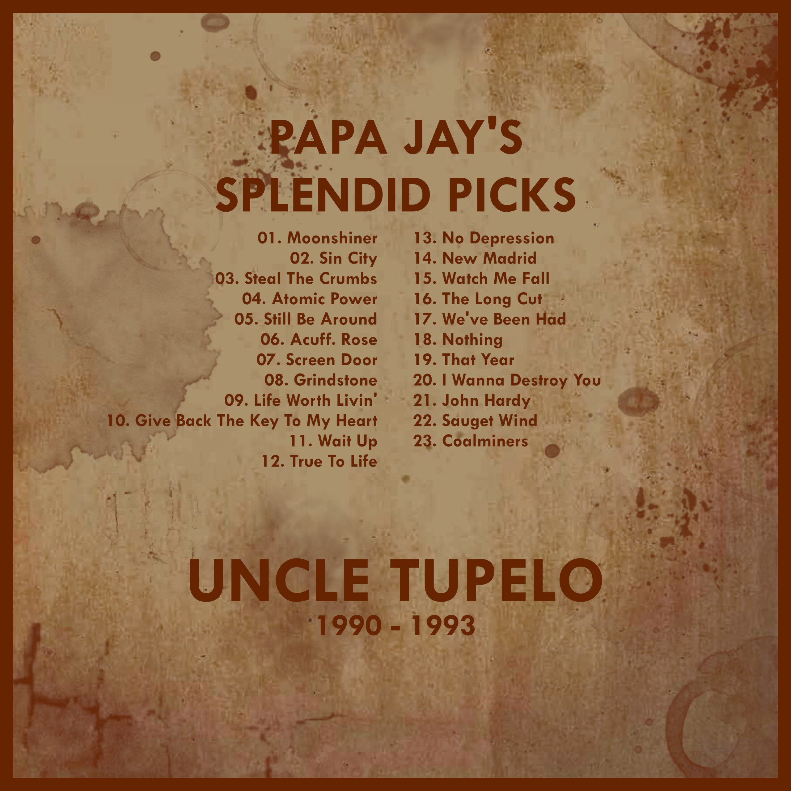 This compilation/playlist features my favourite songs by the legendary but short lived Alternative Country-Rock outfit Uncle Tupelo taken from their albums “No Depression”, “Still Feel Gone”, “March 16-20, 1992” and “Anodyne” which have been released between 1990 and 1993.
